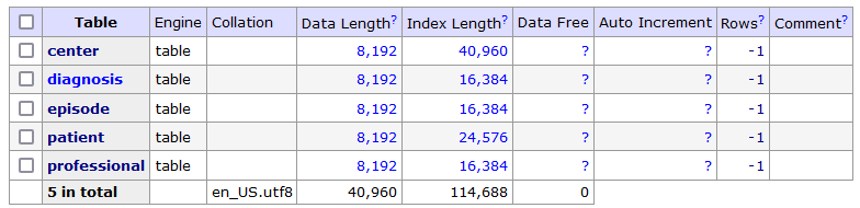 Si vous vous souvenez des articles précédents, nous avons déployé une base de données PostgreSQL reproduisant la base de données d'un système HIS. Jetons un coup d'œil aux exemples de tableaux que nous avons dans notre HIS particulier.