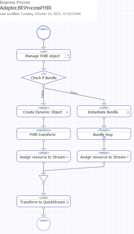 Nous avons mis en place une BPL dans notre production qui gère la messagerie FHIR reçue depuis notre service métier (Business Service). Voici la manière dont elle est mise en œuvre :