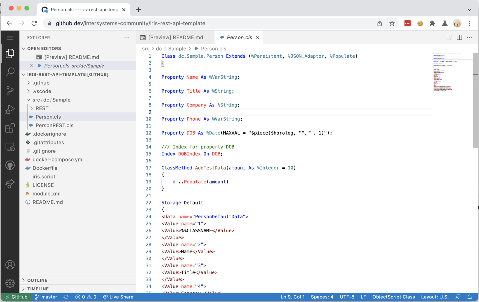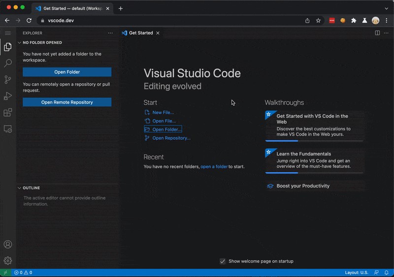 Il y a une autre option, si vous souhaitez exécuter VSCode dans le navigateur, mais sans être lié à un quelconque dépôt GitHub, et juste ouvrir une partie de votre dossier local. C'est https://vscode.dev. L'extension VSCode-ObjectScript y est également disponible.