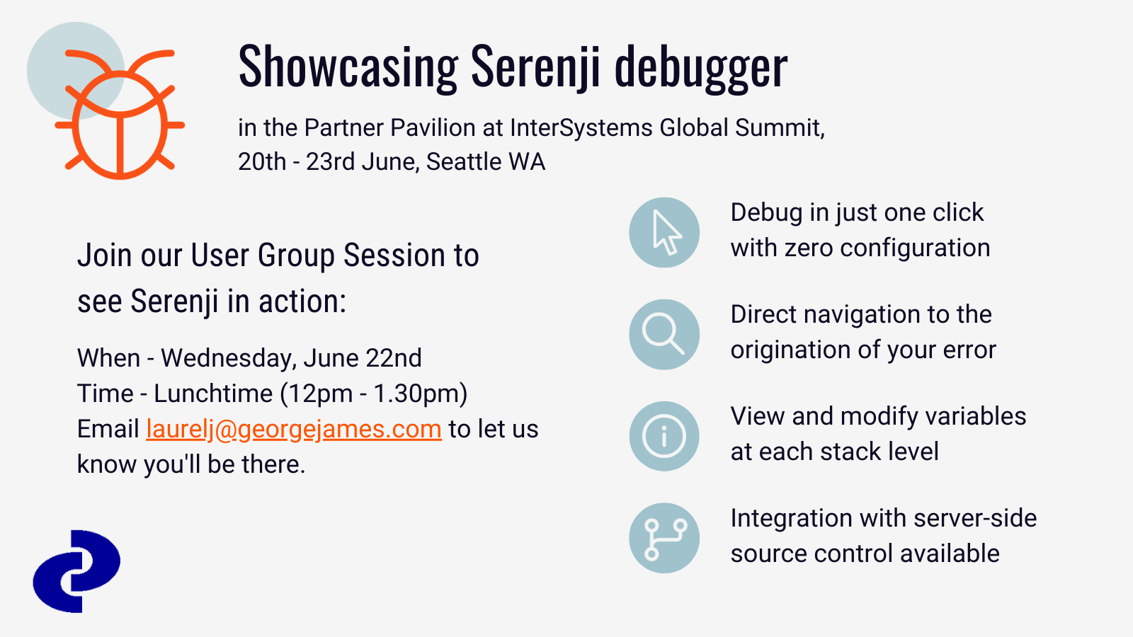 Si vous souhaitez en savoir plus, rendez-vous dans le pavillon des partenaires ou réservez pour notre session de groupe d'utilisateurs pendant le déjeuner du mercredi 22 juin. Envoyez un e-mail laurelj@georgejames.com pour nous informer de votre présence.